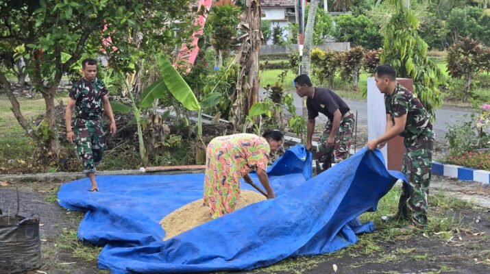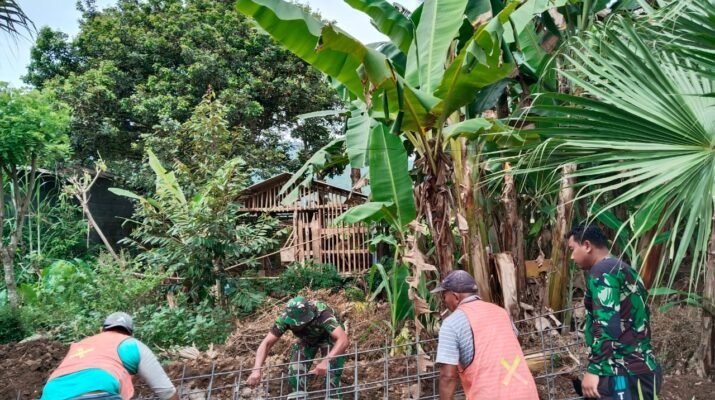 anggota Satgas TMMD menunjukkan aksi gotong royong yang patut diacungi jempol dengan membantu warga Dusun Kerajan 1B, Desa Lebakharjo