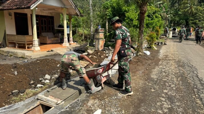 Di tengah tingginya intensitas hujan yang melanda wilayah Kecamatan Ampelgading, Kabupaten Malang, Satgas TNI Manunggal Membangun Desa (TMMD) ke-126 Kodim 0818/Malang-Batu terus menunjukkan