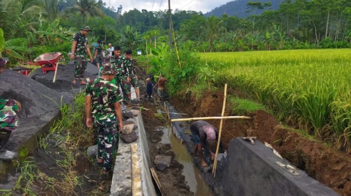 Satgas TMMD ke-126 di Desa Lebakharjo, Kecamatan Ampelgading, Kabupaten Malang, mempercepat pengerjaan fisik saluran irigasi yang menjadi salah satu sasaran utama program tersebut.