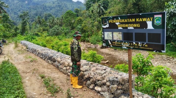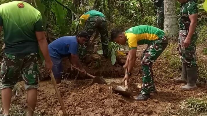 Ampelgading – Di tengah teriknya matahari dan medan berlumpur, semangat anggota Satgas TNI Manunggal Membangun Desa (TMMD) ke-126 di Desa Lebakharjo, Kecamatan Ampelgading, Kabupaten