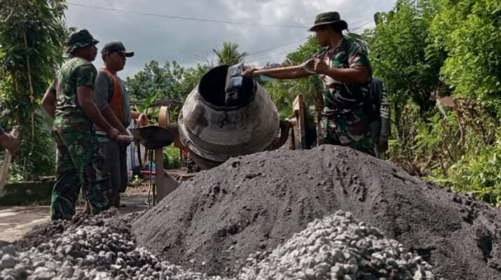 Dalam rangkaian kegiatan TNI Manunggal Membangun Desa (TMMD) ke-126, prajurit TNI Angkatan Udara dari Lanud Abd. Saleh dan TNI Angkatan Laut dari Lanal