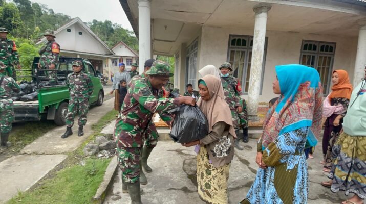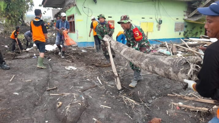 Lumajang — Upaya penanggulangan dampak erupsi Gunung Semeru di Kecamatan Pronojiwo kembali digencarkan. Personel Kodim 0821/Lumajang bergerak cepat membantu warga yang terdampak, dengan