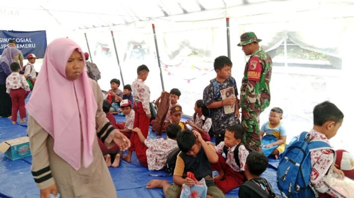 Lumajang — Upaya memulihkan sektor pendidikan pasca erupsi Gunung Semeru di Kecamatan Pronojiwo terus digencarkan. Kodim 0821/Lumajang kembali menunjukkan komitmennya dengan mengerahkan para