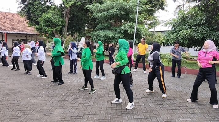 Anggota Koramil 0825/14 Kabat dan Persit Gelar Senam Bersama Forpimka dan Pemdes di Lapangan Kecamatan