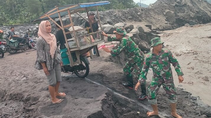 Lumajang – Kepedulian TNI terhadap keselamatan masyarakat kembali terlihat di wilayah terdampak erupsi Gunung Semeru. Bati Tuud Koramil 0821-15/Tekung, Pelda Rudi Rusmianto, bersama