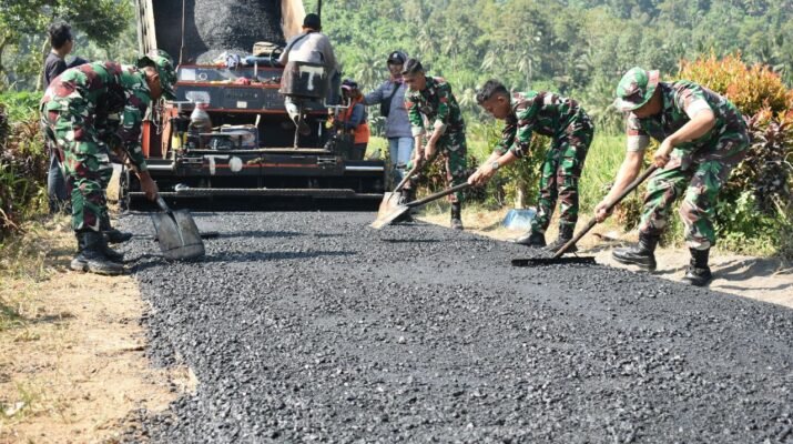 Satgas TMMD ke-126 Kodim 0818/Malang Batu Melaksanakan Pengaspalan Jalan di Dusun Sukomaju Dalam rangka mendukung percepatan pembangunan infrastruktur desa, anggota Satgas TNI Manunggal Membangun Desa (TMMD)