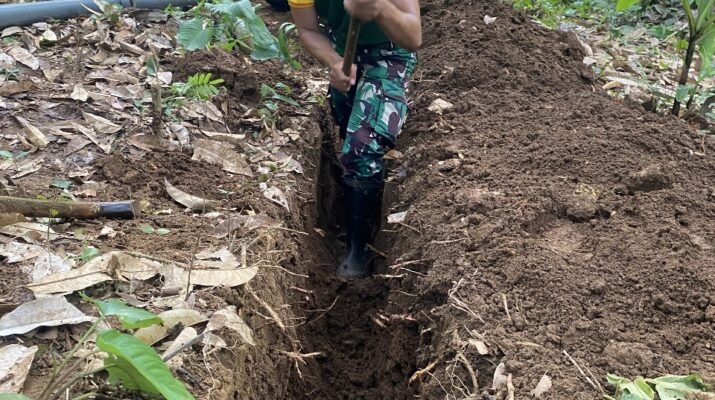 Anggota Satgas TMMD 126 Kodim 0818/Malang-Batu Tinjau dan Cek Pekerjaan Pipanisasi di Dusun Sengkaringan