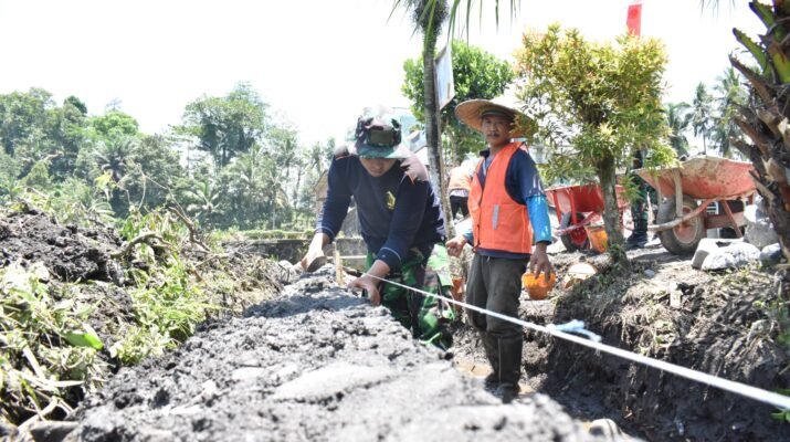 MALANG – Semangat gotong royong kembali terlihat di Desa Lebakharjo, Kecamatan Ampelgading, Kabupaten Malang. Anggota Satgas TNI Manunggal Membangun Desa (TMMD) ke-126 Kodim