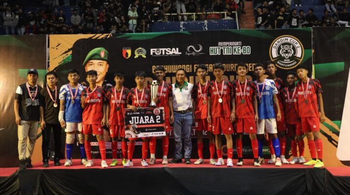 BANYUWANGI – Ribuan pasang mata tertuju ke lapangan GOR Tawang Alun, Sabtu sore (4/10/2025). Sorak penonton menggetarkan tribun saat Banyuwangi Futsal Turnament Dandim Cup