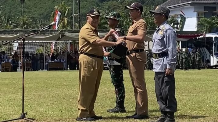 BUPATI MALANG SERAHKAN ALAT KERJA KEPADA ANGGOTA TMMD KE-126 KODIM 0818/MALANG-BATU DI DESA LEBAK HARJO