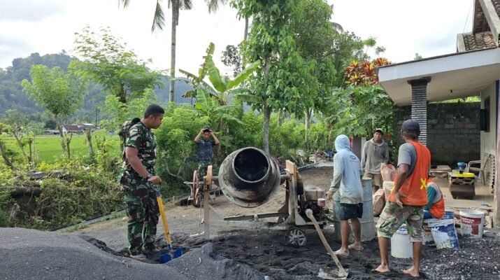 Semangat gotong royong dan dedikasi tinggi menjadi pemandangan sehari-hari di Desa Lebakharjo, Kecamatan Ampelgading, Kabupaten Malang, seiring berjalannya Program TNI Manunggal Membangun Desa