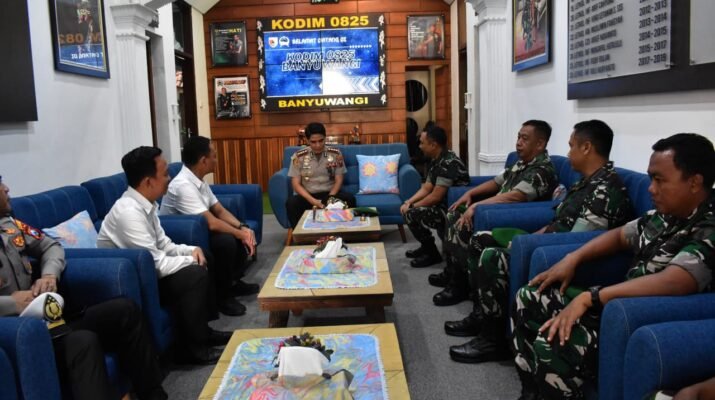 BANYUWANGI – Komandan Kodim 0825/Banyuwangi menerima kunjungan silaturahmi Kapolresta Polresta Banyuwangi, Kombes Pol. Dr. Rofiq Ripto Himawan, S.I.K., S.H., M.H., di Makodim 0825/Banyuwangi,