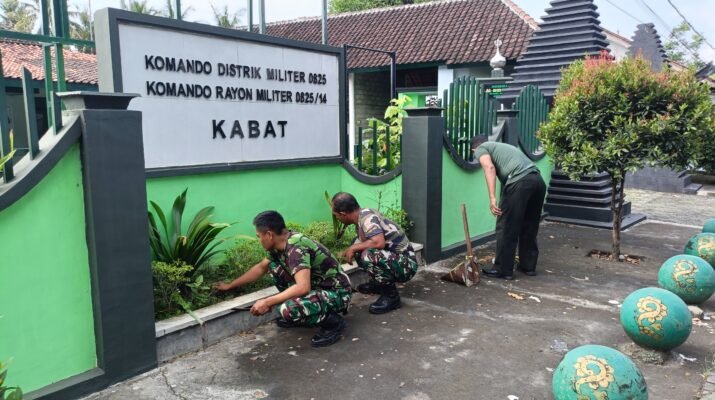 Sambut Ramadhan 1447 H, Personel Koramil 0825/14 Kabat Gelar Karya Bhakti Bersihkan Makoramil