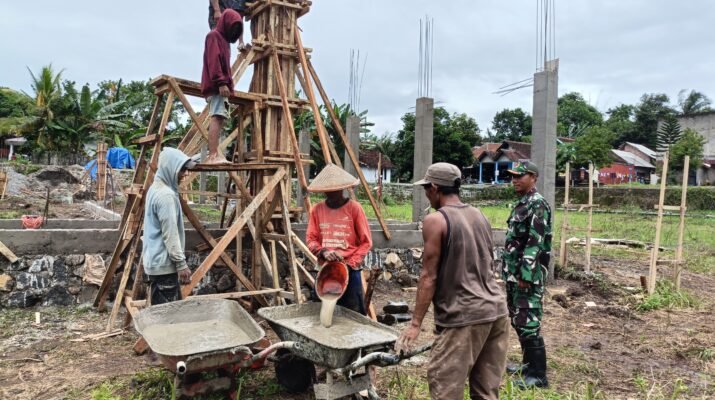 Babinsa Sertu Totok Widiyanto Jadi Penyemangat Warga dalam Pembangunan KDKMP Desa Bareng