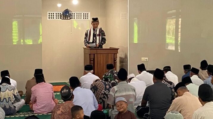 Pabintal Korem 083/Bdj Letda Inf Jaenuri memberikan khutbah Sholat Jumat di Masjid Al-Amin, Desa Lebakharjo, Kecamatan Ampelgading, Kabupaten Malang, Dalam rangka mendukung program TMMD