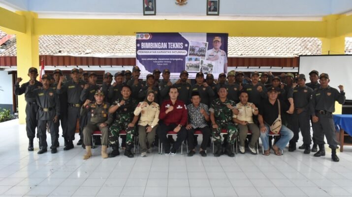 Satuan Tugas TNI Manunggal Membangun Desa (TMMD) ke-126 bersama Pemerintah Desa Lebakharjo dan Satuan Polisi Pamong Praja (Satpol PP) Kabupaten Malang menggelar bimbingan teknis peningkatan kapasitas Satuan Perlindungan Masyarakat (Satlinmas) di Desa Lebakharjo