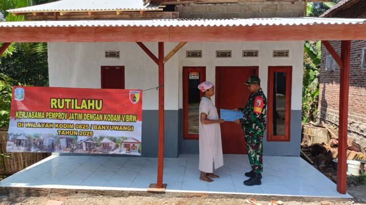 Kabat – Babinsa Desa Macan Putih, Kecamatan Kabat, Serka Hadi Purnomo berhasil merampungkan program Rumah Tidak Layak Huni (Rutilahu) tahun 2025 sebanyak 8
