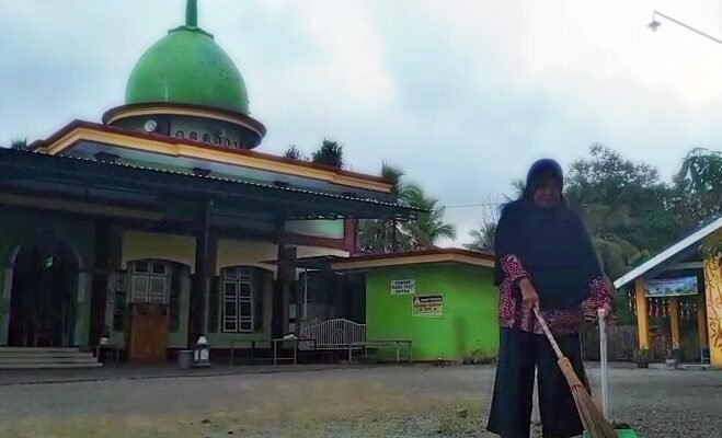 BANYUWANGI – Di sudut Kota The Sunrise The Java (Matahari Terbit di Pulau Jawa) sebutan Kota Banyuwangi. Seorang lansia periang, penuh humoris dan pekerja keras, mengabdikan dirinya bersih-bersih Masjid Miftahul Huda, Silir Sari, Kabupaten Banyuwangi.