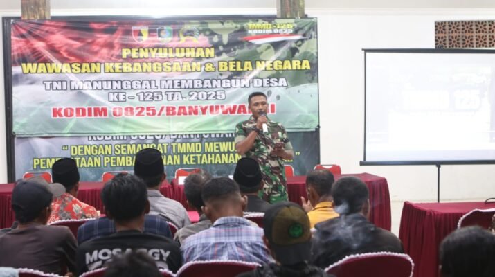 BANYUWANGI – Satgas TNI Manunggal Membangun Desa (TMMD) ke-125 Kodim 0825/Banyuwangi melaksanakan kegiatan penyuluhan Wawasan Kebangsaan (Wasbang) di Desa Kesilir, Kecamatan Siliragung, Kabupaten Banyuwangi,