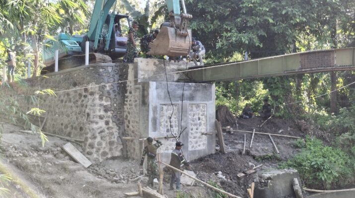 Banyuwangi – Semangat gotong royong antara personel TNI dan masyarakat kembali terlihat dalam lanjutan pembangunan jembatan pada program TNI Manunggal Membangun Desa (TMMD) ke-125