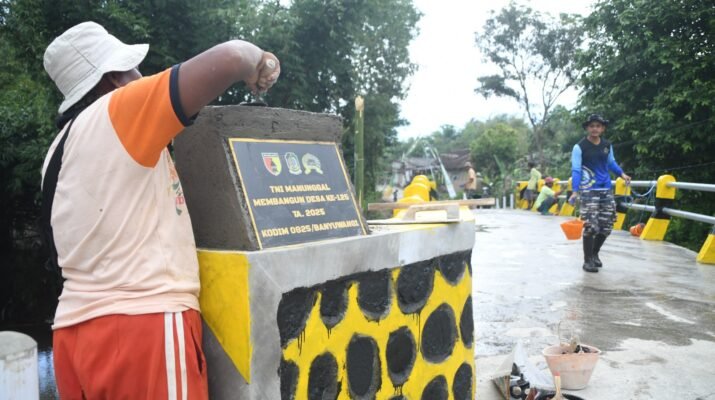 BANYUWANGI – Anggota TNI yang tergabung dalam TNI Manunggal Membangun Desa (TMMD) telah menyelesaikan pengerjaan jembatan di Desa Silirsari dengan tahapan akhir berupa