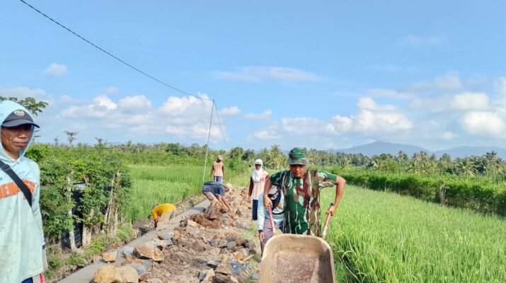 BANYUWANGI, 09 AGUSTUS 2025 – Di tengah terik matahari siang ini, semangat gotong royong dan kebersamaan antara Satuan Tugas (Satgas) TNI Manunggal Membangun Desa