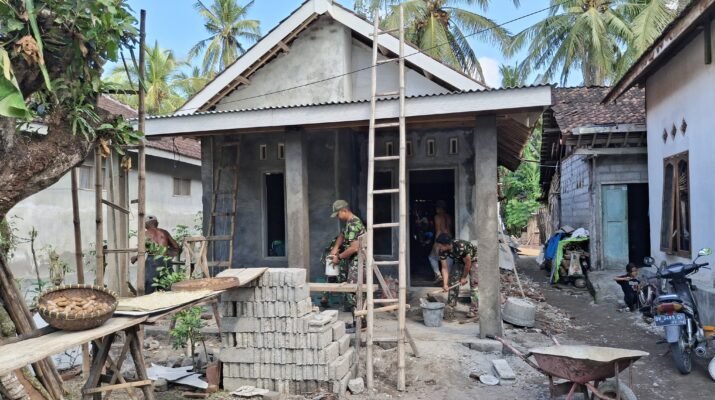 Banyuwangi – Satgas TNI Manunggal Membangun Desa (TMMD) ke-125 Kodim 0825/Banyuwangi melaksanakan pembangunan Rumah Tidak Layak Huni (RTLH) milik Ibu Sulami di Desa Siliragung,
