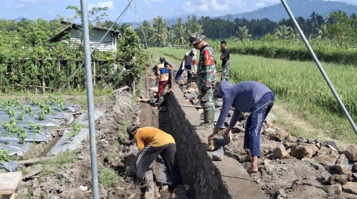 BANYUWANGI – Semangat gotong royong antara Tentara Nasional Indonesia (TNI) dan masyarakat terus membara di Desa Kesilir, Kecamatan Siliragung, Banyuwangi. Satuan Tugas (Satgas) TNI