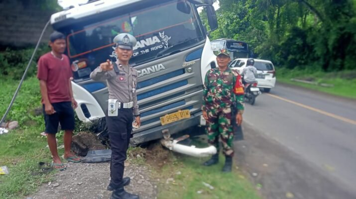 Kecelakaan tunggal tersebut melibatkan truk trailer bernomor polisi B 9655 UIW yang mengangkut alat berat. Kendaraan besar itu terperosok ke parit di sisi kanan jalan sebelum melintasi jembatan dari arah selatan, sehingga mengganggu arus lalu lintas jalur nasional dari dua arah.